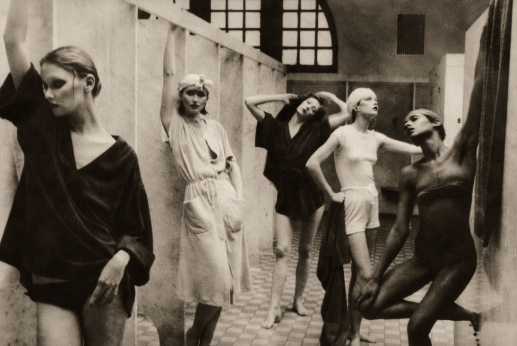 El punto de inflexión llegó en 1975 con la publicación en American Vogue de la serie Bathhouse, donde retrató a cinco modelos en un antiguo baño ruso en ruinas de Nueva York. Las imágenes, lejos de exaltar la belleza corporal o las prendas, presentaban figuras femeninas espectrales, vestidas con tonos apagados, desprovistas de glamour, con miradas ausentes y cuerpos aparentemente frágiles. El entorno desgastado, húmedo y decadente sumaba a la atmósfera de inquietud y nostalgia.
